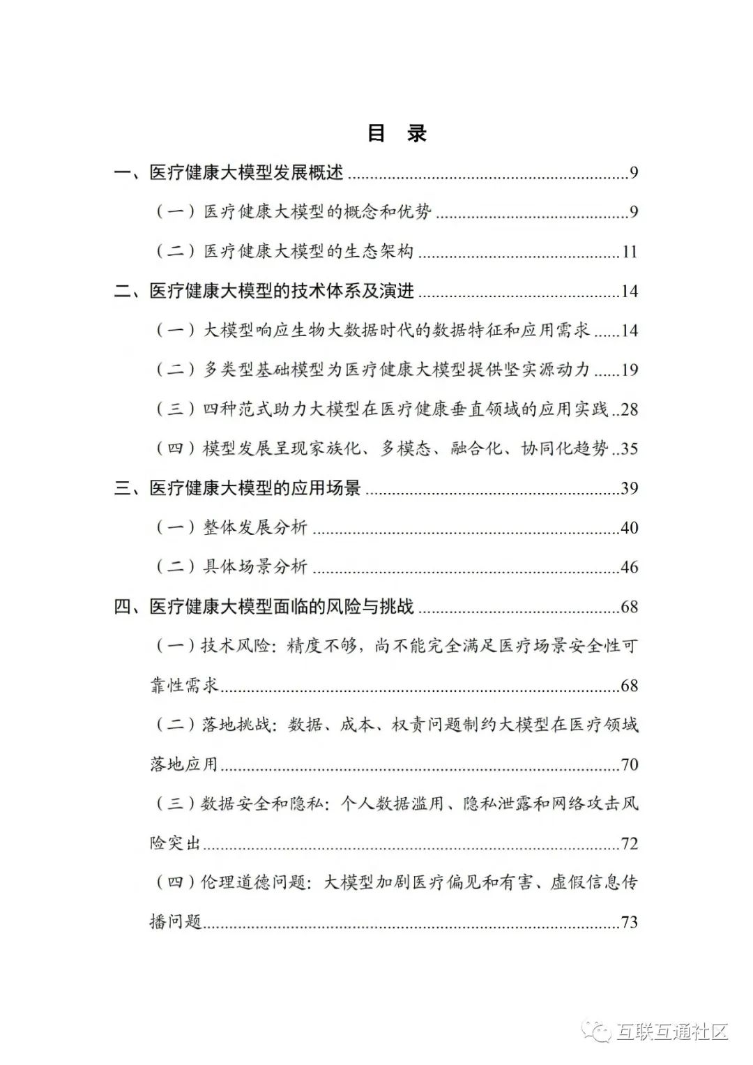 本白皮书集中梳理了国内外医疗健康大模型的最新态势及发展成果,尤其是技术体系、应用场景、风险挑战、评价和监管等方面的内容。白皮书首先阐述了医疗健康大模型的概念内涵、发展优势、生态架构; 对医疗健康大模型技术体系和演进趋势进行了分析:并对医疗健康大模型应用现状及优秀应用案例进行了系统性梳埋。在此基础上,白皮书分析了医疗健康大模型面临的技术、应用、数据、伦理挑战,并结合医疗健康大模型标准、验证评价和监管治理情况,提出了进一步促进医疗健康大模型发展的相关建议。