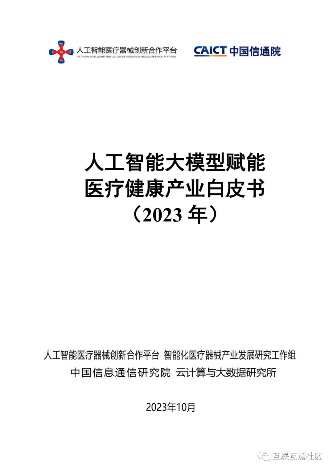 AI194:人工智能大模型赋能医疗健康产业白皮书