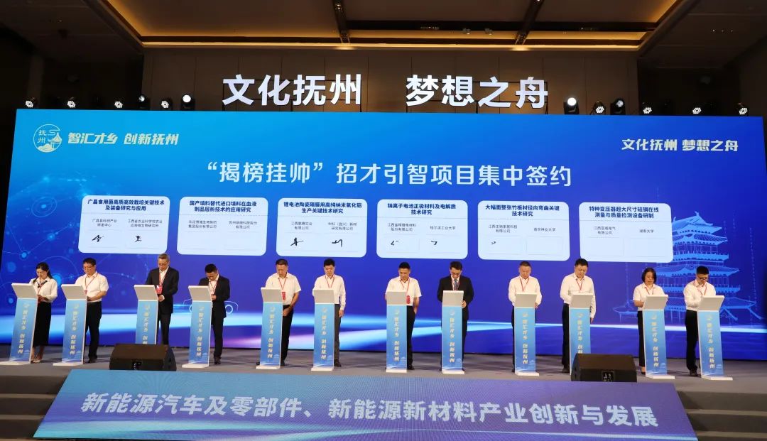 启动仪式上,还举行了校地校企合作招院引所项目、重大技术项目攻关“揭榜挂帅”招才引智项目、新能源汽车及零部件和新能源新材料产业链招商引资项目签约仪式;新能源汽车及零部件产业和新能源新材料产业链博士服务团成立授牌仪式和2021年“揭榜挂帅”项目兑榜仪式;大连理工大学汽车工程学院院长、教授、博士生导师赵剑,上海交通大学教务处处长、致远学院常务副院长、燃料电池研究所所长章俊良,深圳比克动力电池有限公司CTO林建分别作了主旨演讲。