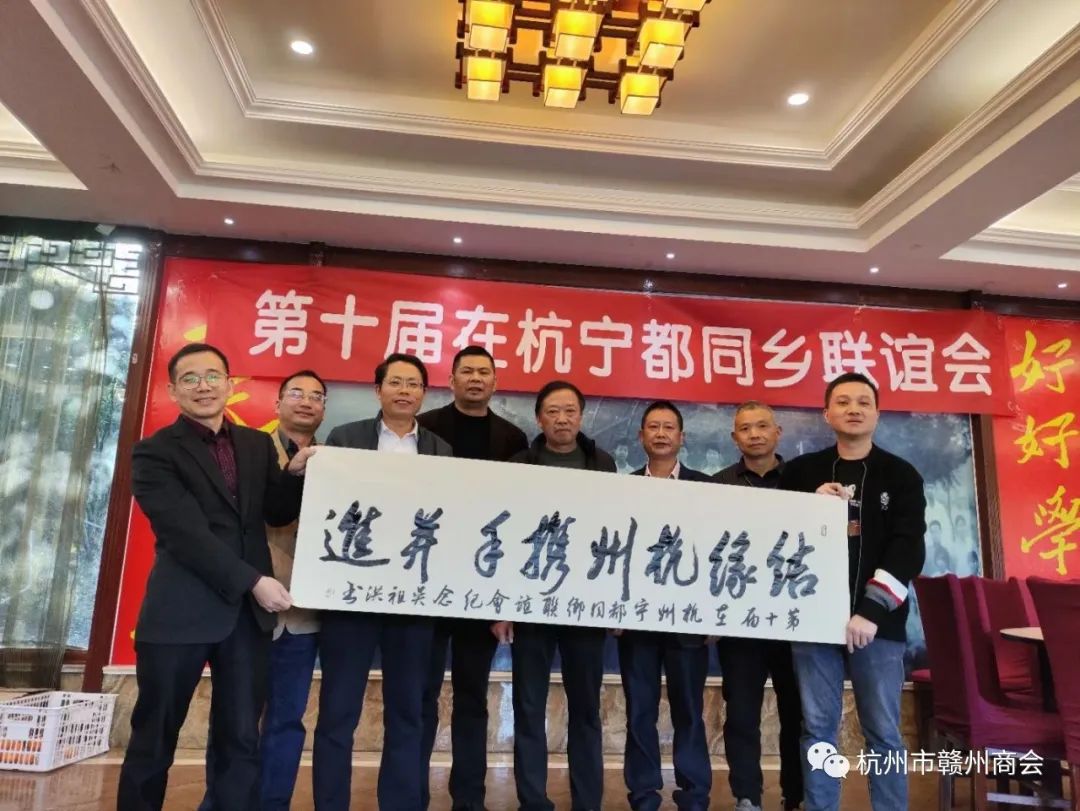 11月19日,杭州市赣州商会宁都籍副会长曾桂林邀请执行秘书长刘晓玫参加第十届在杭宁都同乡联谊会。商会参加此次同乡联谊会的有副会长曾桂林、理事邓勇勇,会员谢文文、肖邦、潘成荣。