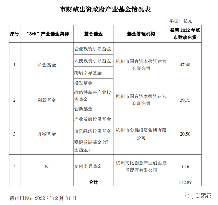 杭州市财政出资政府产业基金情况表(截止2022年12月31日)