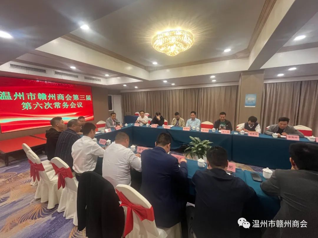 11月10日,第三届第六次常务会议在东瓯大酒店顺利举行,常委班子就换届事宜进行商议,会议由执行秘书长陈春荣主持。荣誉会长曾华林、会长李小球、党支部书记罗会榕、执行会长曹云鸿、李小强,秘书长蓝立志、常务副会长谢蒋伟、曾方平、谢华平、李平生,以及刘德彬、温礼斌等12位副会长,副秘书长胡启标、赖金平,陈敏华、卢泽仁等人参会。