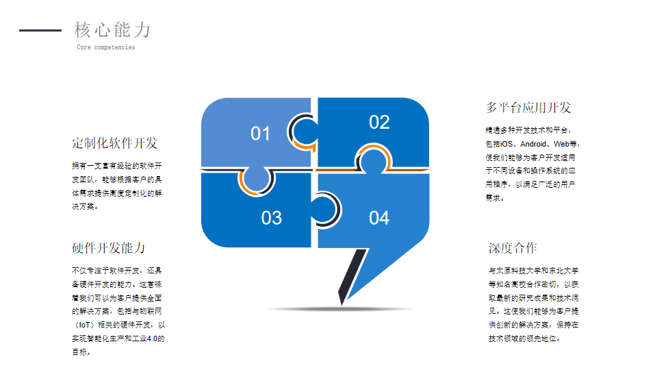 我们的业务能力表现在多个项目中,如智慧城市、智慧农业、工厂自动化、智能监控等领域。我们与各行各业的客户合作,帮助他们实现业务目标,提高效率,增加竞争力。