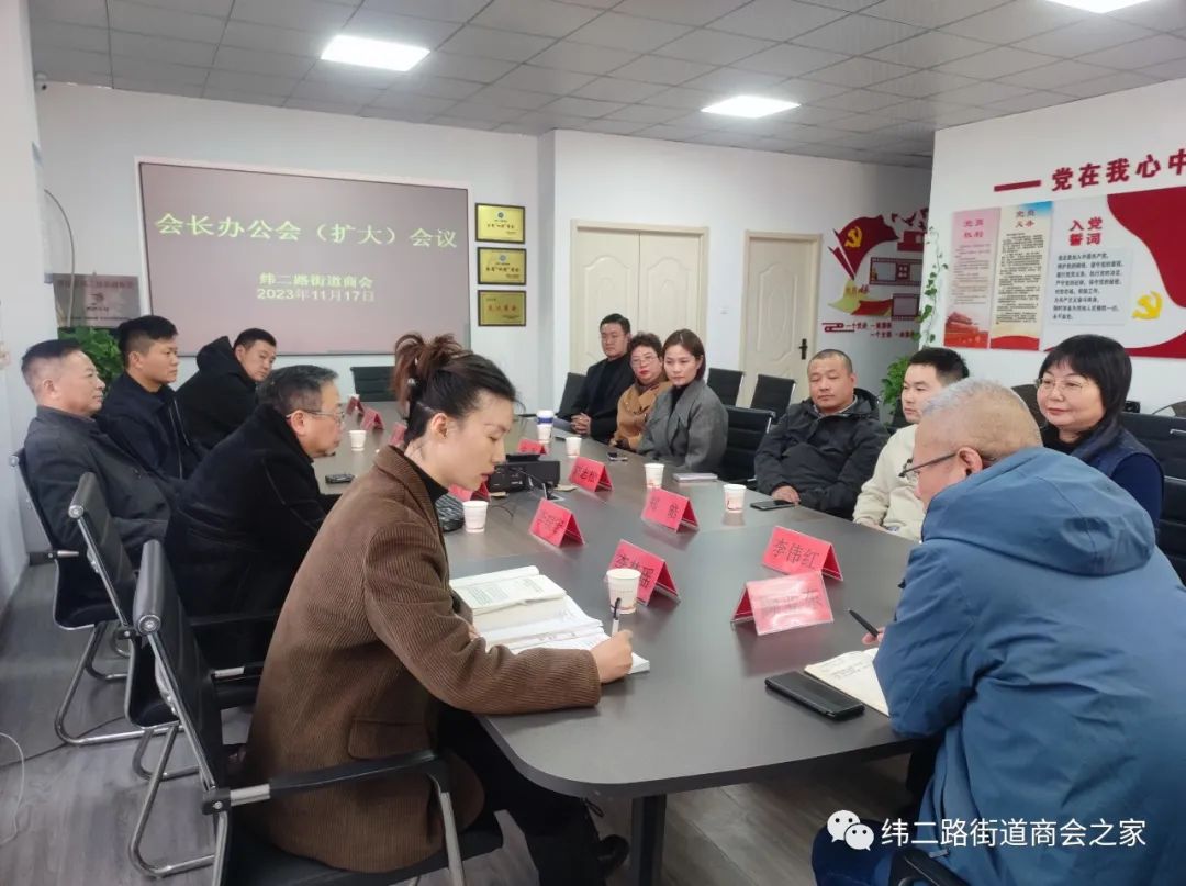 11月17日下午,蚌埠市蚌山区纬二路街道商会在商会会议室召开会长办公(扩大)会议。商会党支部成员、商会班子成员及各委员会负责人出席会议。会议由会长顾亚东主持。