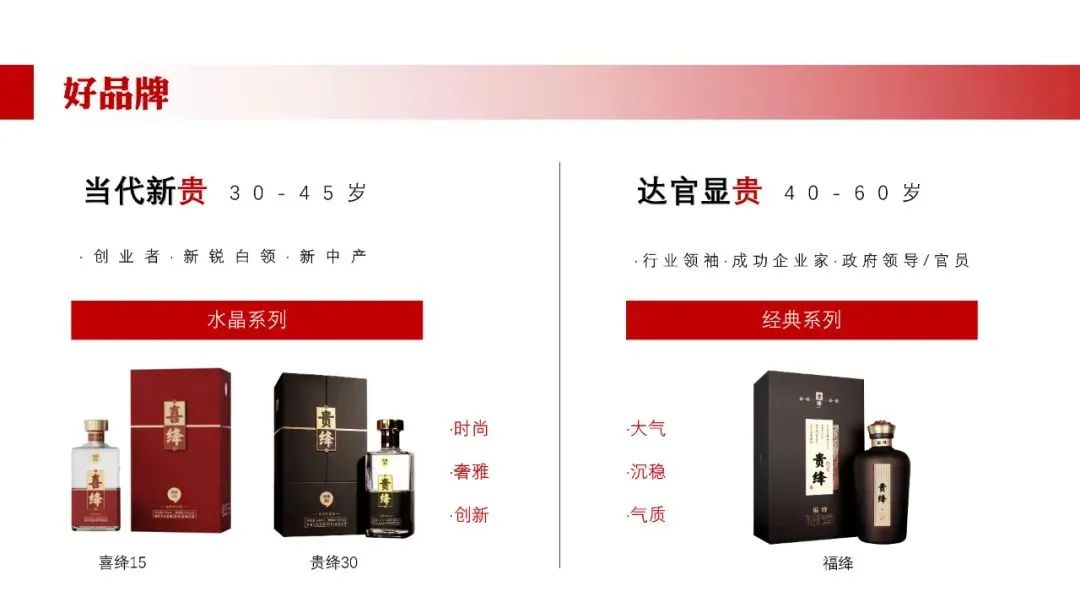 面对增长动力转轨、国内消费升级的绝佳市场机会,打造了贵绛、喜绛、福绛等酱酒品牌,分别定位精英阶层、大众消费领域,全面覆盖主流酱酒消费市场。
