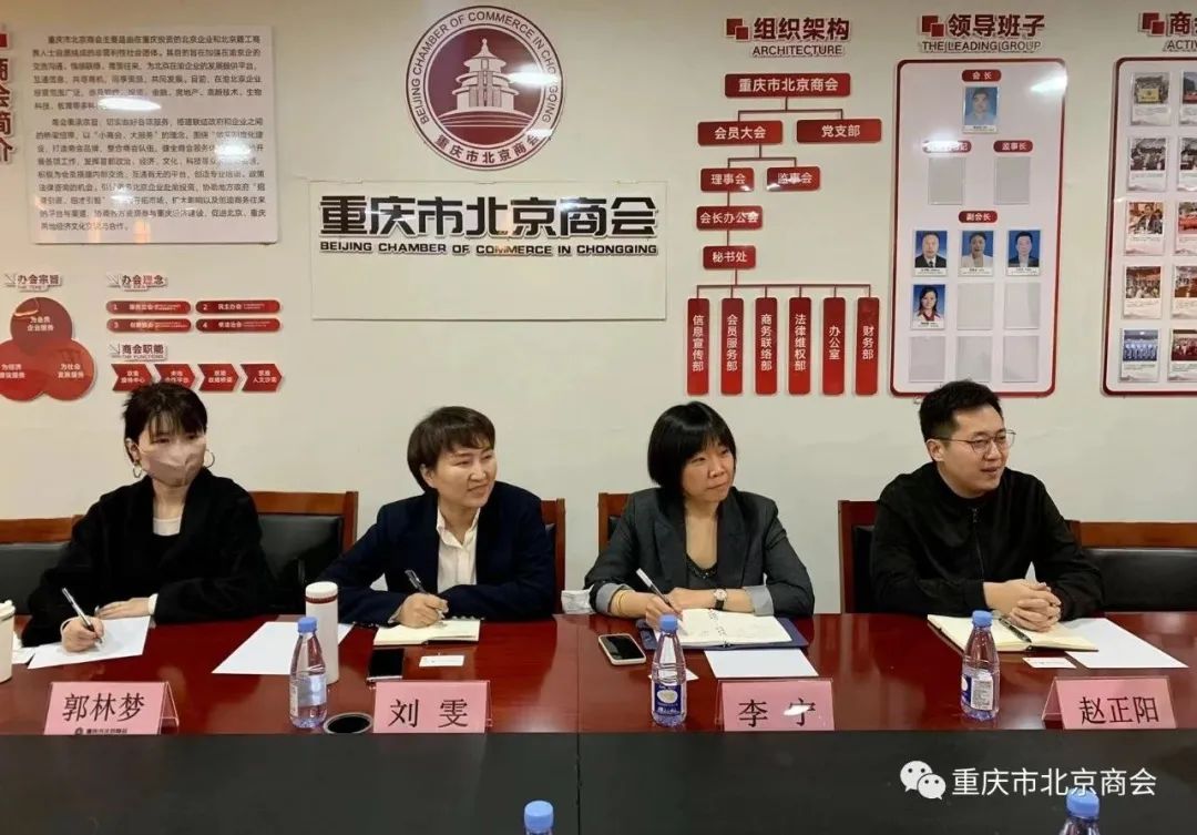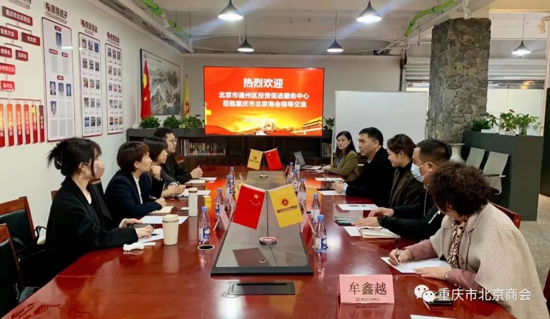会议由何秋艳秘书长主持,她代表商会对北京市通州区投资促进服务中心一行莅临商会指导交流表示欢迎,详细介绍了商会发展概况、会员服务、政府服务及兄弟商会间友好往来等方面内容。她表示,通州作为城市副中心在政治定位和区位空间等诸多方面具有明显且独特的优势,商会将积极支持并配合投促中心招商工作,发挥京渝政企桥梁作用,协助大力宣传北京副中心投资环境,推动企业进京投资与发展。
