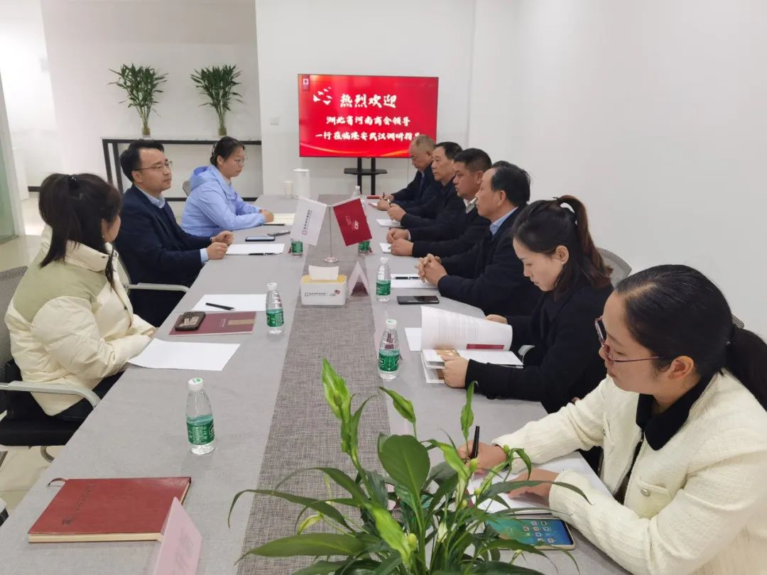 2023年11月15日上午,湖北省河南商会副会长余本海、执行秘书长王广军,武汉市信阳商会党支部书记肖清明,湖北省河南商会副秘书长何成、会员部部长朱群立、秘书处秘书余秋平、商会会员许媛媛等一行莅临隆安武汉指导工作。