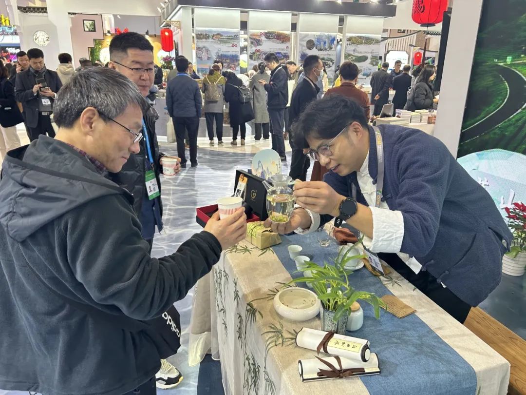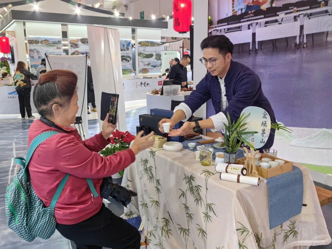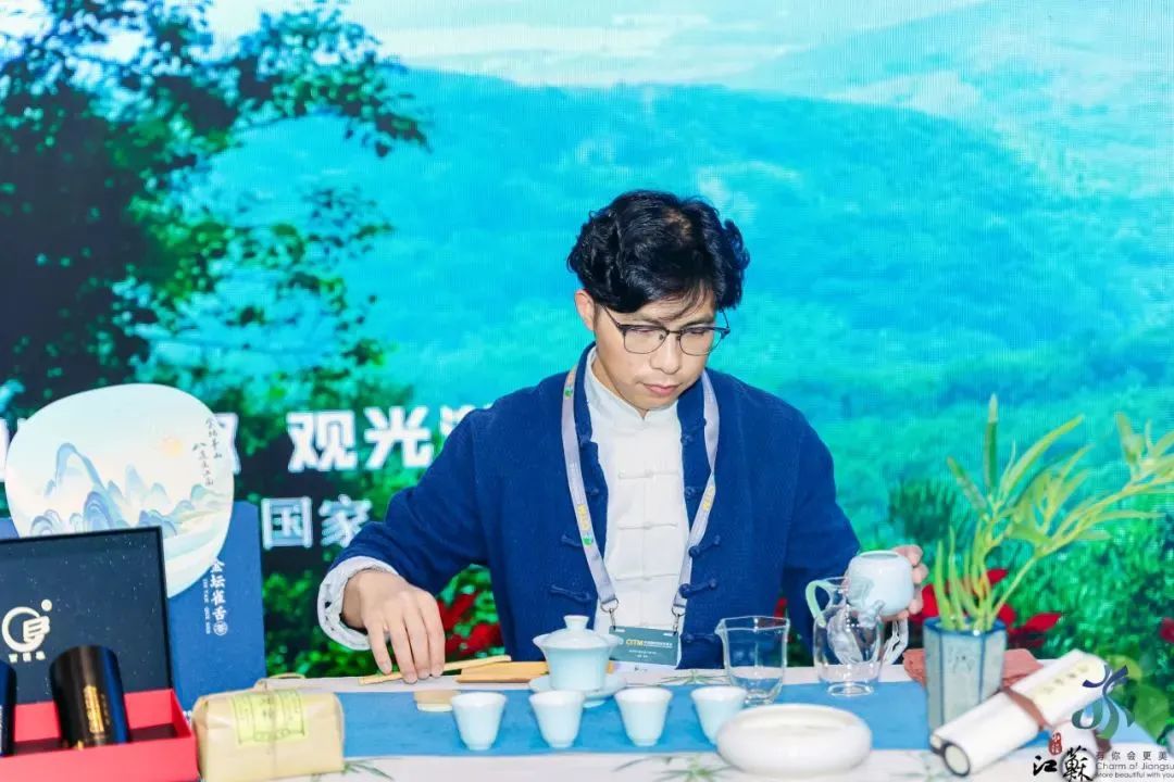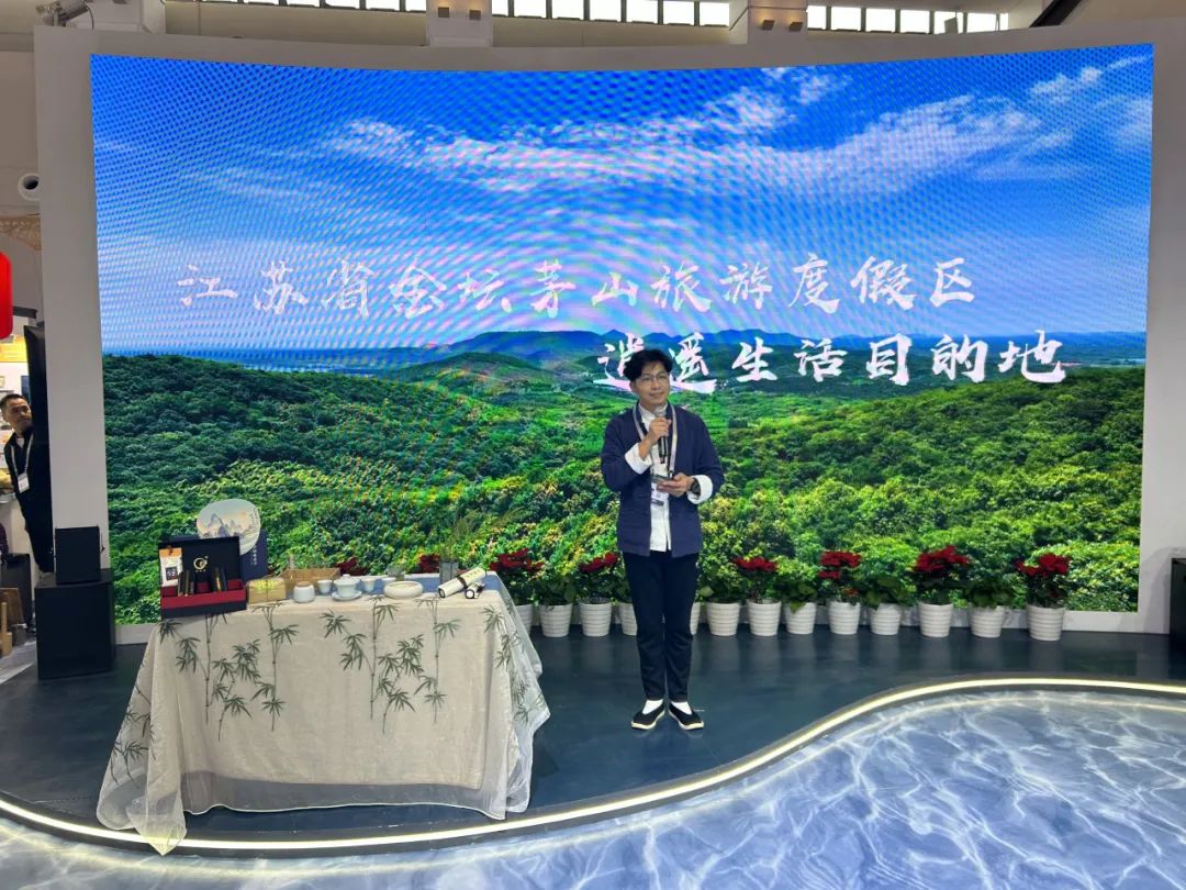为了更好地吸引游客,让更多人了解金坛茅山,活动期间在江苏展厅推介区进行了两场金坛茅山旅游推介,茶香氤氲的茅山茶和茅山茶艺展示成了现场的一大亮点,带领观众沉浸式游茶乡,观茶艺,品茶香。