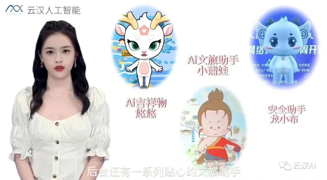 云汉构建了独特的文旅AI底座,将文旅大模型与AI智能体有机结合,基于华为昇腾芯片提供算力支撑,通过特定的对话系统进行训练,最终呈现出富有个性而且智能的虚拟文旅助手。