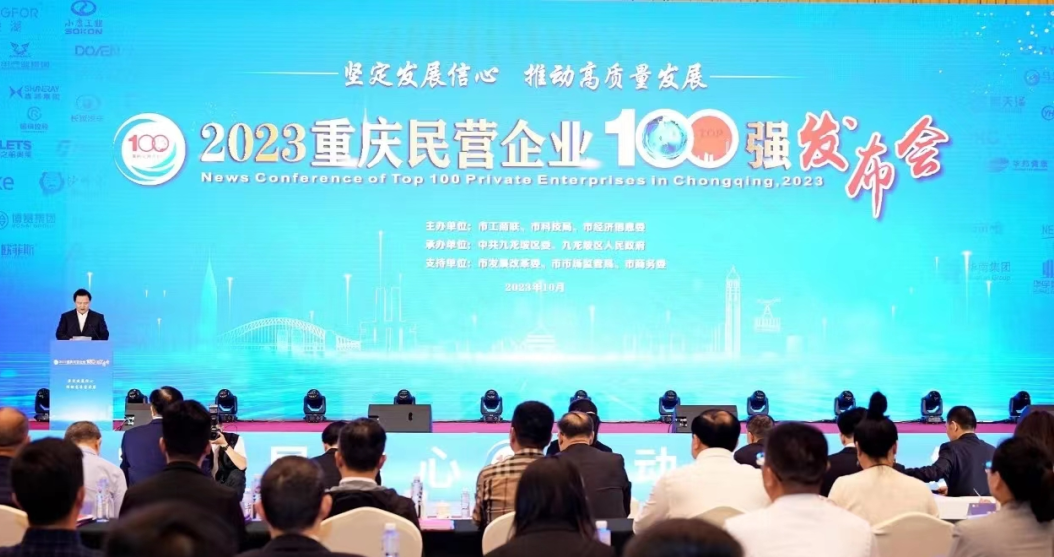 10月17日,重庆市举办2023重庆民营企业100强发布会。重庆市委常委、统战部部长卢红出席并讲话。发布会由市委统战部副部长、市工商联党组书记张洪斌主持。