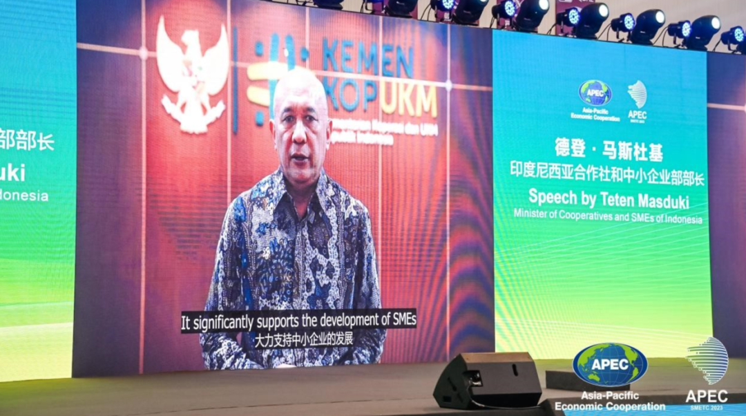 在视频致辞中表示,本届APEC技展会的主题设定与2023年APEC优先目标—“互联互通、创新、包容”十分契合,旨在通过加强对中小企业的发展的支持,提高其竞争力和国际化水平。他表示,应建立一个国际合作机制,以增强APEC经济体之间的供应链协同效应。这将大大增强中小企业的商业竞争力,提高其国际化程度,并改善中小企业在国际贸易中的伙伴关系。