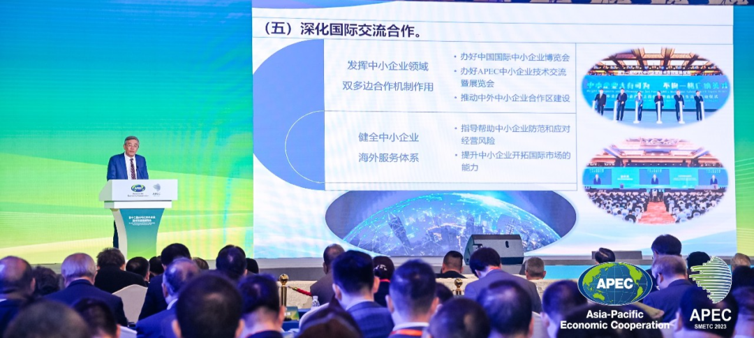 中国政府坚持推动中小微企业健康可持续发展,持续推进中小微企业高水平开放合作。2022年,习近平总书记亲自推动将促进中小企业专精特新发展的中国倡议写入《亚太经合组织领导人宣言》。中方将坚定推进亚太区域经济一体化,共同开拓中小微企业发展新局面。充分发挥APEC机制作用,携手落实2040年亚太经合组织布特拉加亚愿景,聚焦2023年APEC中小微企业优先领域,激发中小微企业吸纳就业能力,促进亚太地区实现包容性发展。助力企业专精特新发展,推动中小微企业理念、技术、组织管理和模式创新,加强大中小企业融通发展,强化产业链上下游、大中小企业供需对接,共促中小微企业高质量发展。推进数字化绿色化转型,构建数字化绿色化转型服务体系,鼓励开发“小快轻准”数字化产品和解决方案,推广绿色节能低碳技术应用,加大绿色能源供给,引导中小微企业加快转型步伐,为亚太地区可持续发展作出贡献。推动亚太中小微企业务实合作,支持中小微企业在贸易投资、科技创新、技术人才等领域扩大合作广度和深度,发挥中外中小企业合作区跨境撮合服务平台的作用,为中小微企业国际化发展提供交流对接和配套服务。