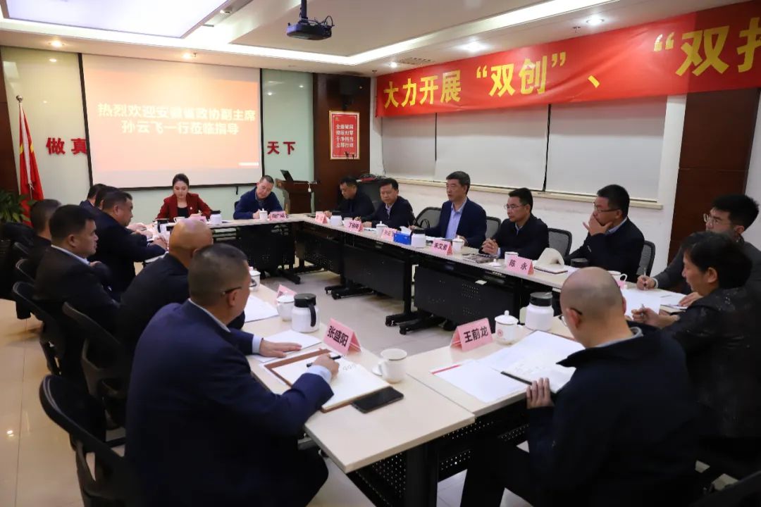 11月21日下午,安徽省政协副主席孙云飞,省政府副秘书长、驻京办主任朱艾勇,省政协文化文史和学习委员会主任丁伯明等一行莅临北京安徽企业商会(以下简称“商会”),就“新时代徽商精神”展开专题调研。