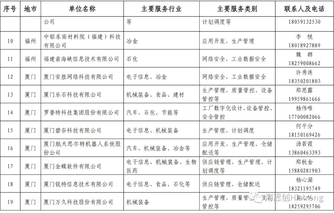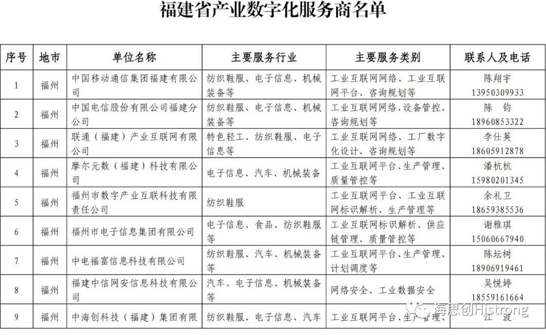 关于公布福建省产业数字化服务商名单的通知