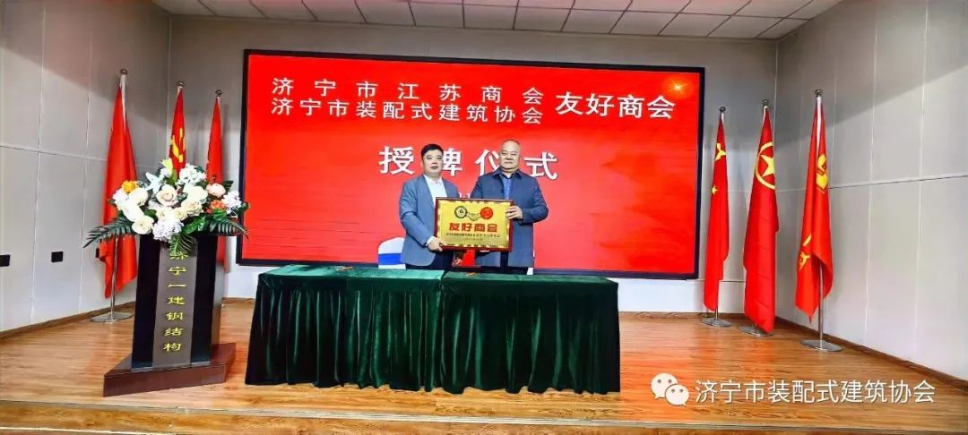 2023年11月19日下午,一场隆重的“友好商会”签约仪式在济宁一建钢结构有限公司会议室隆重举行。本次活动由济宁市装配式建筑协会主办,各商会会长、秘书长等众多重要嘉宾共同参与。