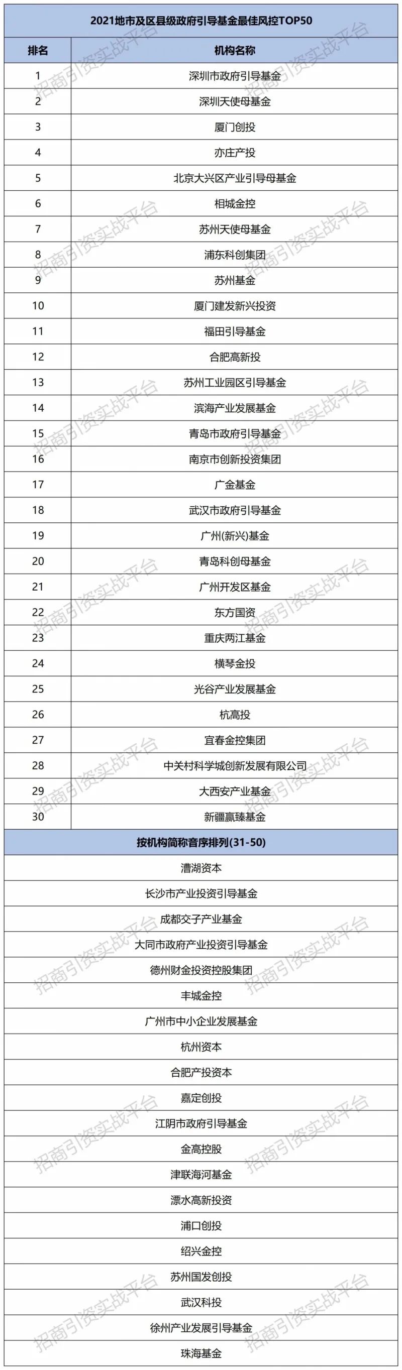 省级与地市、县区级政府产业引导基金最佳风控榜单