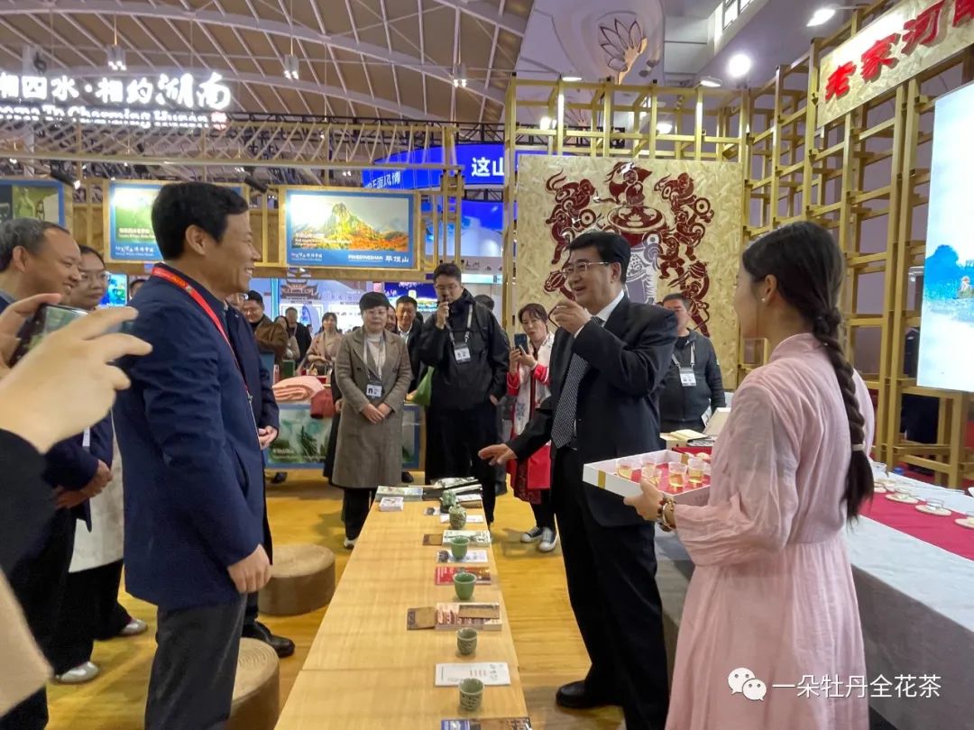 一朵牡丹全花茶以花为媒,香飘千里,惊艳亮相2023中国国际旅游交易会。以国际化方式,行走在世界前沿,展示在世界面前。