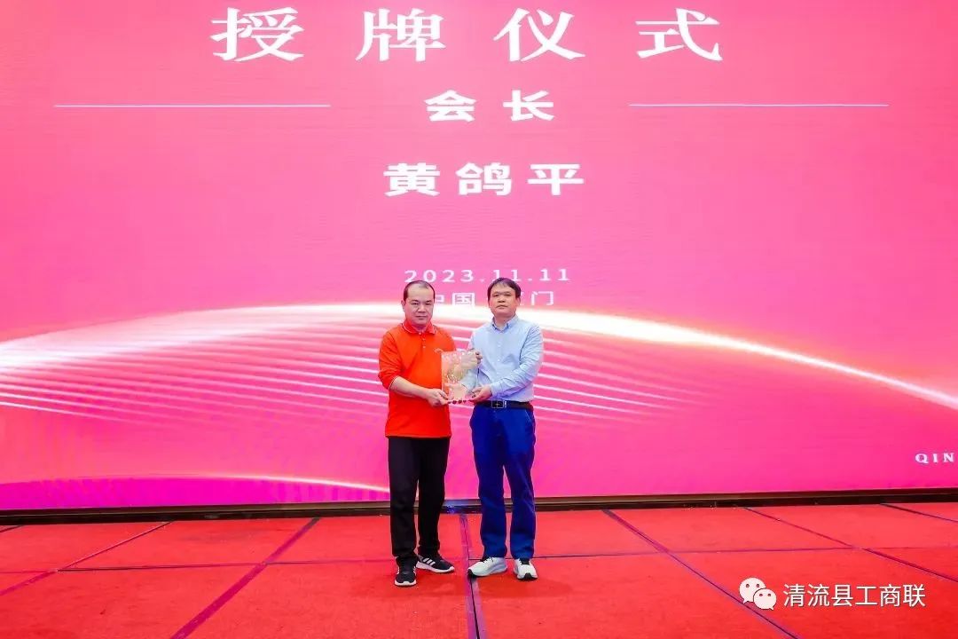 清流县工商联党组书记包盛吉为会长黄鸽平授牌
