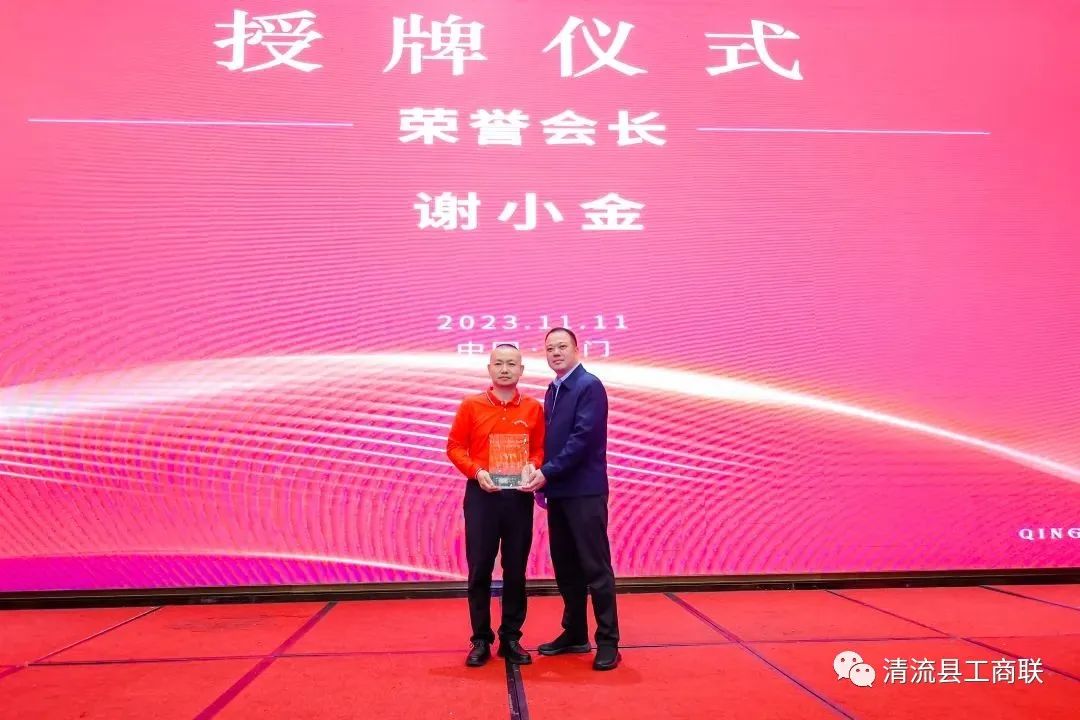 清流县委统战部部长罗兴茂为荣誉会长谢小金授牌