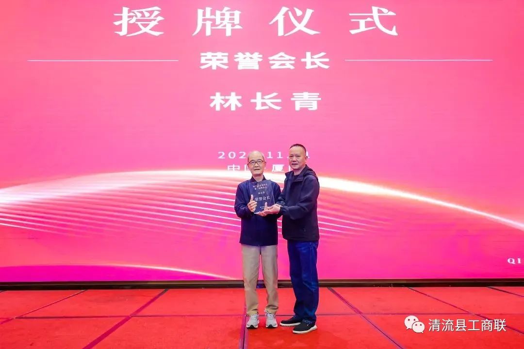 清流县政协主席邹卫东为荣誉会长林长青授牌