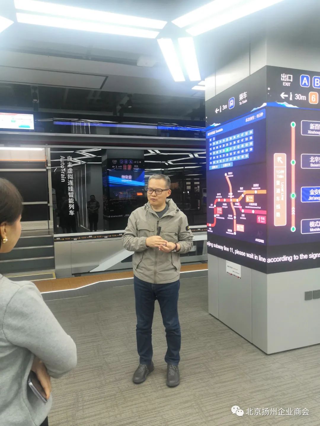 联谊活动开始前,交控科技董事长郜春海带领艺术家们参观了陈列在交控科技大厦里有关轨道交通控制系统的实物图片,他向艺术家们介绍了我国轨道交通控制技术发展的昨天、今天和明天的同时,还向艺术家们介绍了交控科技集团这些年来在轨道交通控制系统领域所做的努力以及所取得的成绩。艺术家们为交控科技集团取得的成绩感到无比自豪。