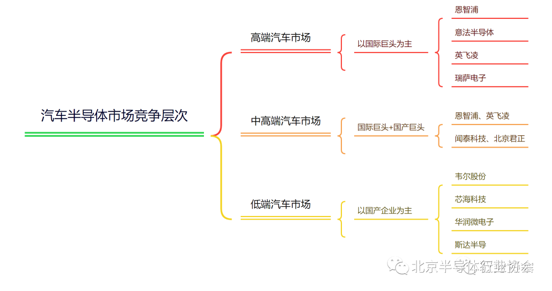 中国汽车半导体市场的竞争层次可以分为高端汽车市场、中高端汽车市场和低端汽车市场。各个层次的市场竞争均呈现出不同的特点和竞争格局。