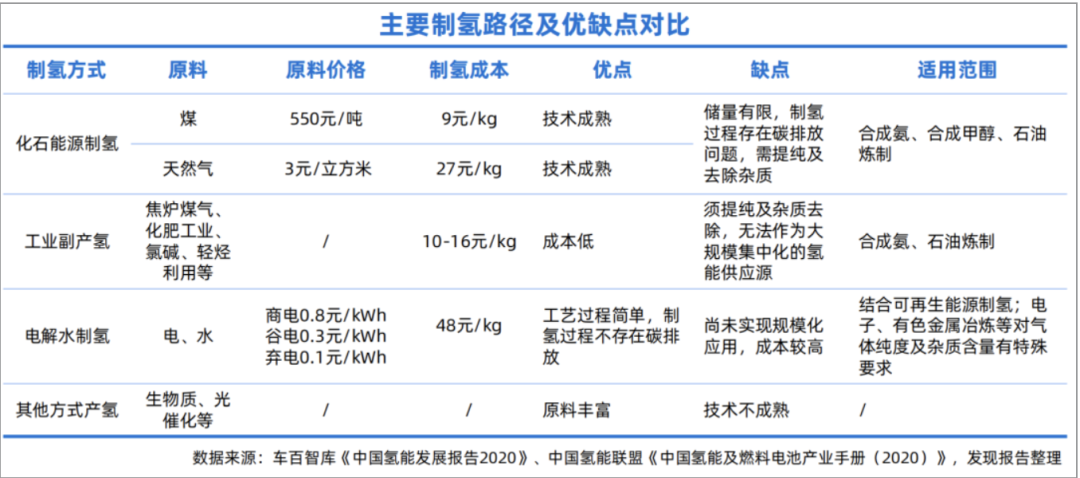 ·在制取氢方面,通过电力成本与设备成本的协同降低,方可体现绿氢的经济优势。较之于日本、韩国等国家,我国幅员辽阔,具有广阔的沙漠、戈壁、荒漠、草原及海域资源,可以提供丰富的太阳能、风能、潮汐能等可再生能源资源,在发展绿氢方面具有先天优势,可以加快实现“氢能中国”战略。氢的制取产业主要有三种较为成熟的技术路线:一是以煤炭、天然气为代表的化石能源重整制氢;二是以焦炉煤气、氯碱尾气、丙烷脱氢为代表的工业副产氢,三是电解水制氢。目前,中国氢气供给结构中约近80%来源于煤制氢或焦炉煤气副产氢,电解水等清洁氢源占比较低。