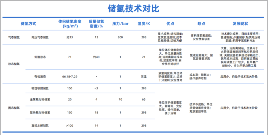 ·在储运氢方面,氢的长距离储运将以天然气管道掺氢或新建纯氢管道输氢为主,中短距离要以如氨等多种储运技术结合,并因地制宜地发展。随着制氢端的技术突破,通过输氢网络交联,在氢能的下游如工业、交通和建筑等领域大规模普及,绿色“氢经济”的概念将转变为现实。在氢能全产业链中,氢的储运是制约我国氢能产业发展的难点,也是保证氢气安全且经济化应用的关键。主要是因为氢气特殊的物理、化学性能,使得它储运难度大、成本高、安全性低。氢的储存方式根据其存在状态可以分为三大类:气态储氢、液态储氢和固态储氢。