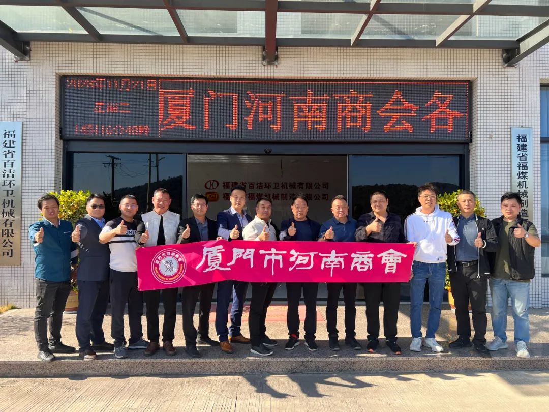 为加强商会会员企业之间的互动和交流,充分发挥商会桥梁纽带作用,进一步加强商会与会员间的联系,增进会员情谊,提升商会凝聚力。2023年11月21日,由第二组轮值会长王亚洲、汪罡带队,支部书记李建中、副会长宋刚、理事吴彦华、仲河青、梁士宽、郝秀田、闫峰,会员赵天兵、陈华伟、赵林、秘书处同仁等一行前往监事长所在福建省福煤机械制造有限公司、福建省百洁环卫机械有限公司参观交流,一行人受到监事长张贵波的热情招待。
