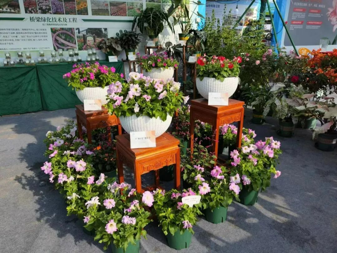 本次展会,我院通过实物展示和布设展位背景板等方式,多角度展示新优花灌木、时花、观叶盆栽、种苗等特色植物品种的亮点。比如,用新优特色花灌木搭造出富有野趣的景观组团;用竹芋、海芋、彩叶芋等观叶盆栽营造低维护、耐观赏的节约型绿化景观;用瓶苗、生根苗、穴盆苗、盆栽,展示从研发到产业化的全流程形态……除此之外,我院还重点展示了自主培育的矮牵牛新品种“广州系列”,并展示了三角梅新优品种选育及应用成果。