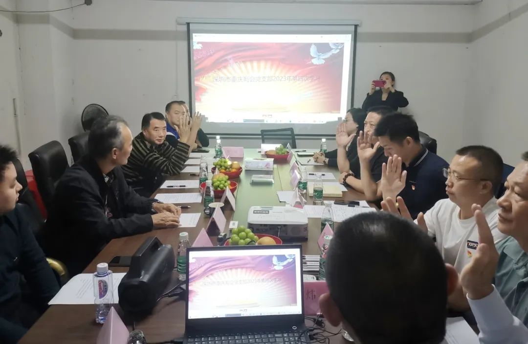 11月19日,商会党支部在深圳市邦安精密机械有限公司会议室召开2023年度第四次主题学习会暨年度工作会。深圳市委组织部两新工委派驻深圳市川渝商会联合党委第一书记杨伟、深圳市川渝商会联合党委书记刘跃进、纪委书记杨北成受邀参加此次会议。会议由商会党支部副书记肖炜主持,深圳市重庆商会党支部书记牟秀平、罗湖支部书记李兆杰、党务工作者罗洪宇、党员张小忠、梁隆勇、梁伟、王国锋、预备党员陈朝帮、发展对象李莉梅等十余人参加会议。