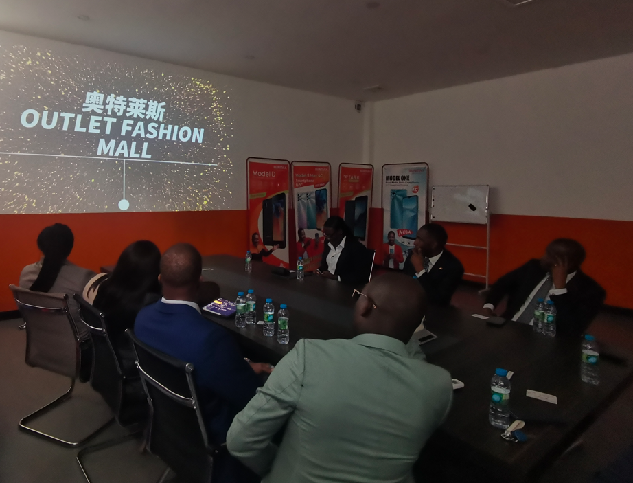 随后,安中商会会长携团队参观了奥特莱斯友邻单位安兴集团,金业盛向会长一行介绍了安兴国际贸易、钢厂、电力、SUNNAX手机、硅锰合金等产品。Luís Cupeñala表示,在安哥拉经济多元化的道路上,安兴集团在本土生产的钢筋、线圈、铁钉、手机、冶金等产品有助于支撑安哥拉经济以及国内市场的发展,为安哥拉经济运行以及人民生活的改善做出贡献。