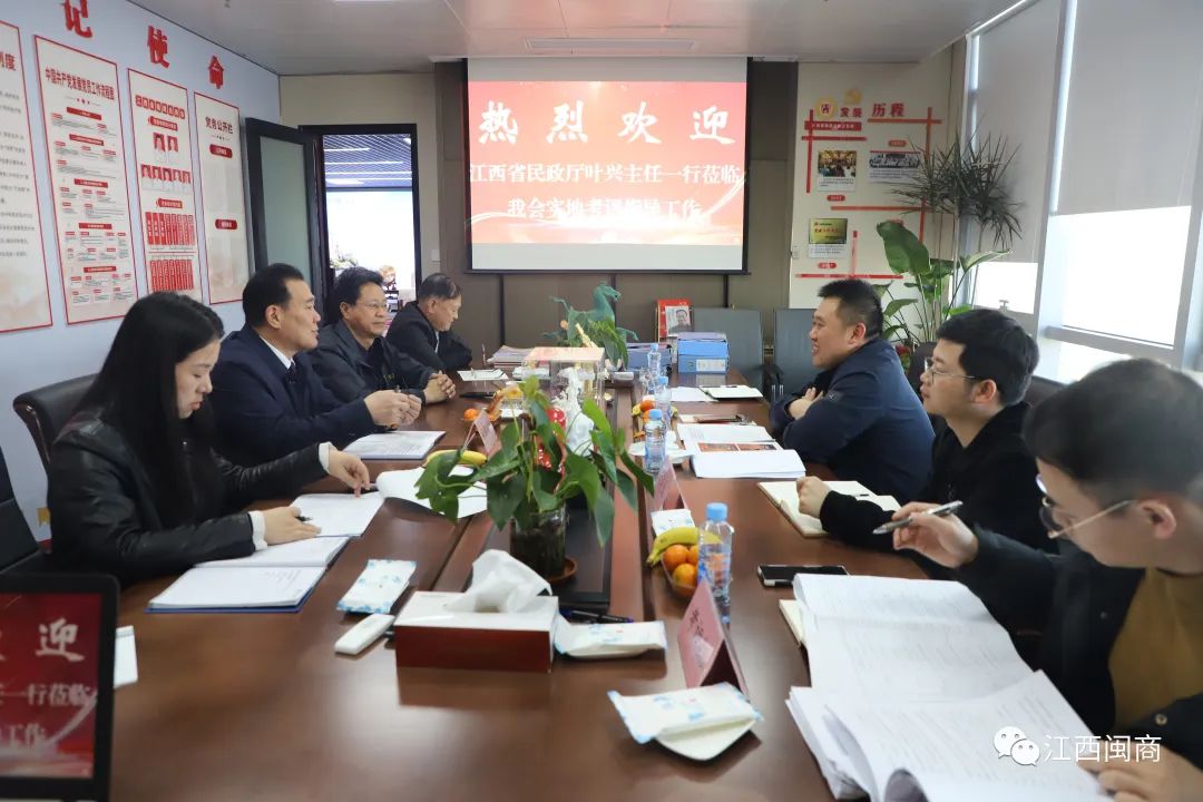 叶兴调研员对商会积极参与精品社会组织申报和已取得的成绩给予了充分肯定,他表示江西省福建总商会作为省级异地商会是最早成立的一批,工作经验积累也是最为丰富的,通过考评能够更深层次地了解商会在规范运作、管理等方面的具体情况,进一步提高商会服务企业、服务会员的能力,增强商会的信誉度和影响力,推进商会健康有序发展。此次实地考评主要是对2023年省本级精品社会组织创建申报工作做实地考察,并对第一次书面评审结果作一个反馈。