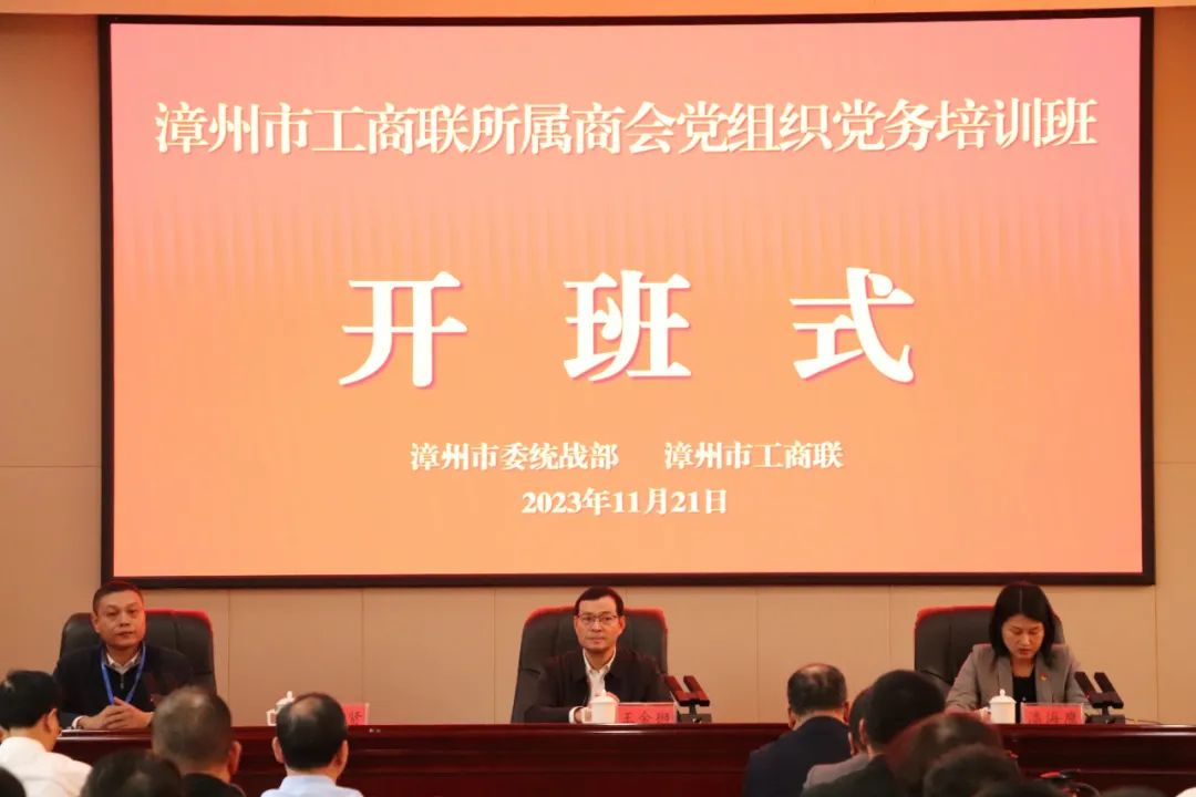 11月21日,2023年漳州市工商联所属商会党组织党务培训班在我校顺利开班,中共漳州市委统战部分管日常工作的副部长(正处长级)、部务会成员王金狮,中共漳州市委统战部副部长、市工商联党组书记潘海鹰出席开班式。市工商联党组成员、副主席张志贤主持开班式,市委统战部、市直统战系统、市工商联所属商会党建指导员、党员骨干及培养对象等80余人参加。