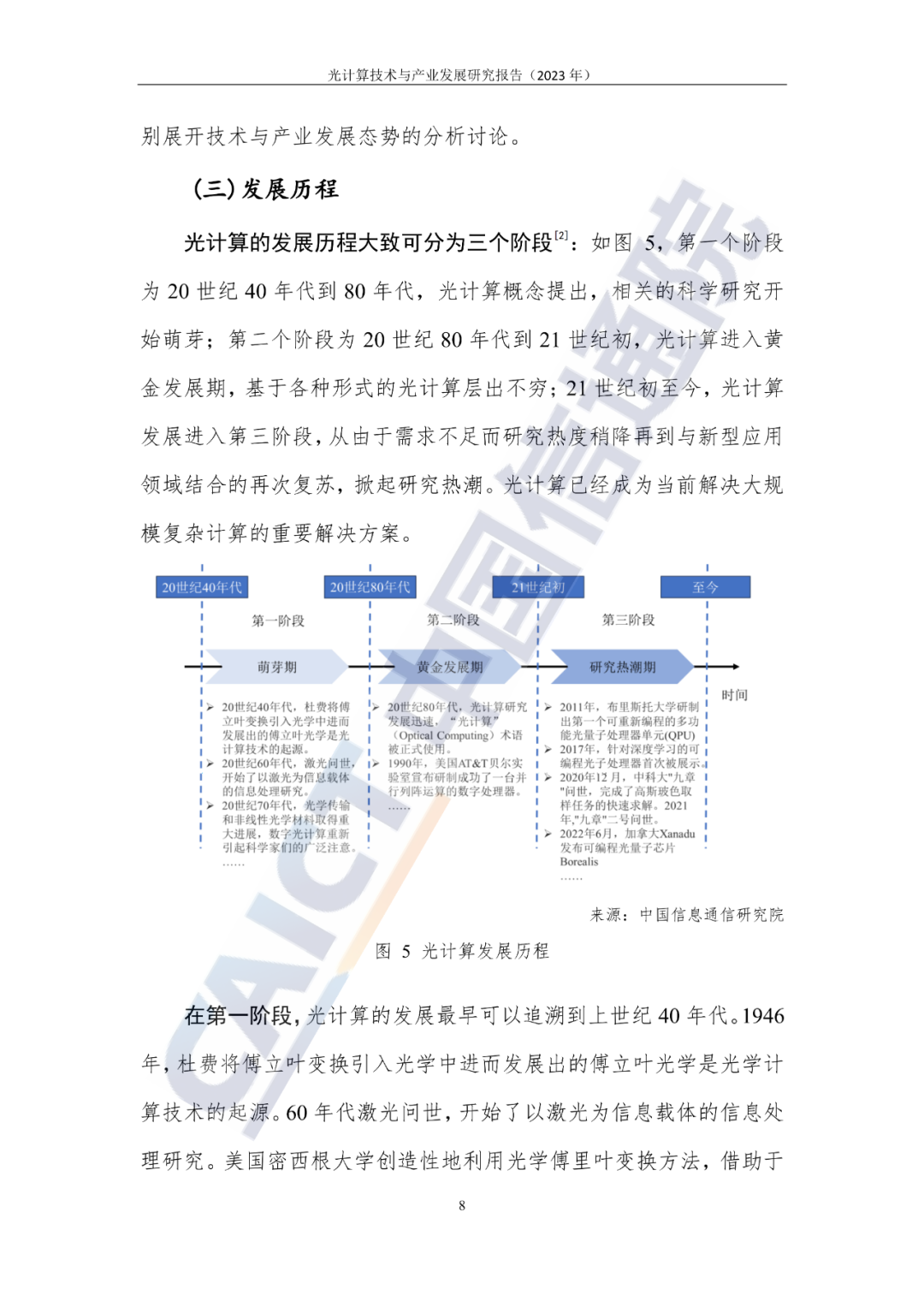 日前,中国信息通信研究院(简称“中国信通院“)正式发布了《光计算技术与产业发展研究报告(2023年)》。报告基于光计算的技术原理分类、产业发展现状、当前国际布局和未来行业应用展开研究。