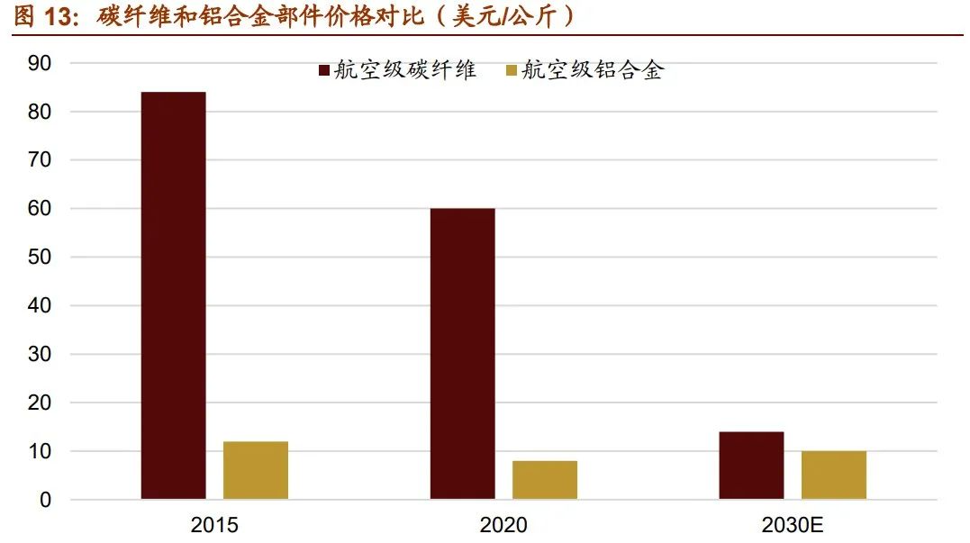 此外,碳纤维在其他应用领域还有很大潜力可以挖掘。以主要竞争对手铝合金为例,碳纤维和铝合金同属替换钢材的轻量化材料,碳纤维在强度、化学稳定性等性能上都占优,并且在飞机部件、高性能汽车车架、自行车架等产品相比铝合金都有更好的表现。但受累于高昂的价格,目前碳纤维应用大多局限于高附加值产品。2016年世界铝材年需求量约是碳纤维的500~600倍,行业产值约为50倍,且受益于汽车工业的发展铝材需求近年也在快速增长。随着技术的进步压低碳纤维的成本,未来碳纤维还有广阔的市场空间。