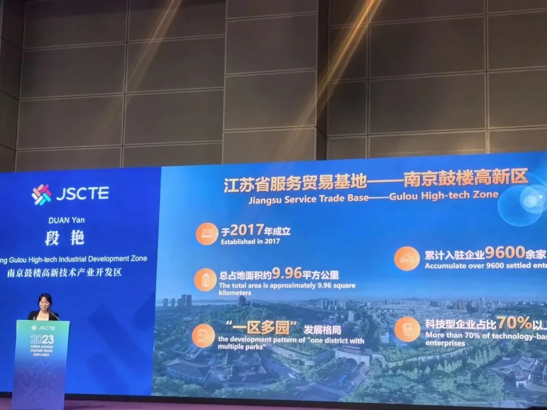 2023 年 11 月 17 日,首届江苏国际文化贸易展览会在马来西亚吉隆坡会展中心盛大启幕,中国驻马来西亚大使馆经济商务处公使衔参赞孙淑强,江苏省省商务厅副厅长姜昕,马来西亚投资、贸易和工业部服务贸易司高级司长施志光,马来西亚中华总商会总会长丹斯里拿督卢成全上议员等各界人士应邀出席此次开幕式,并向大会致辞。南京鼓楼高新区做专题推介。