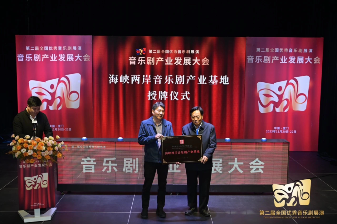 中国文化管理协会主席、全国台联原党组书记梁国扬与厦门市文化和旅游局一级调研员陈少泓、厦门市集美区委宣传部常务副部长戴劲竺参与授牌仪式,“海峡两岸音乐剧产业基地”落户厦门,这标志着两岸音乐剧产业将迎来更加紧密的合作与交流。