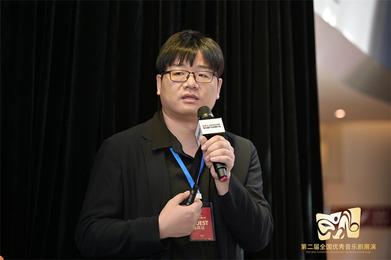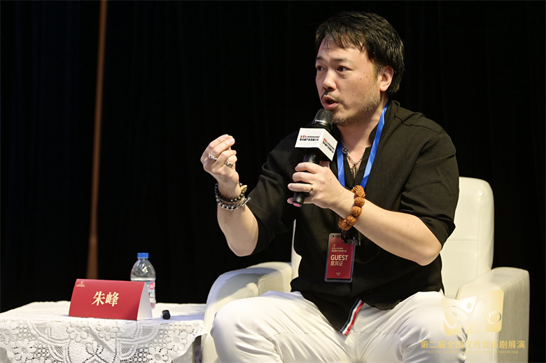 朱峰先生带来了经典综艺作品《国家宝藏》,如何在综艺中通过音乐剧的形式来讲述国宝的故事。他表示“从量变到质变,提高创作能力,音乐剧可以遍地开花。希望未来某一天,能够孵化出传统文化及国风音乐剧,并跨出国门走向世界。”
