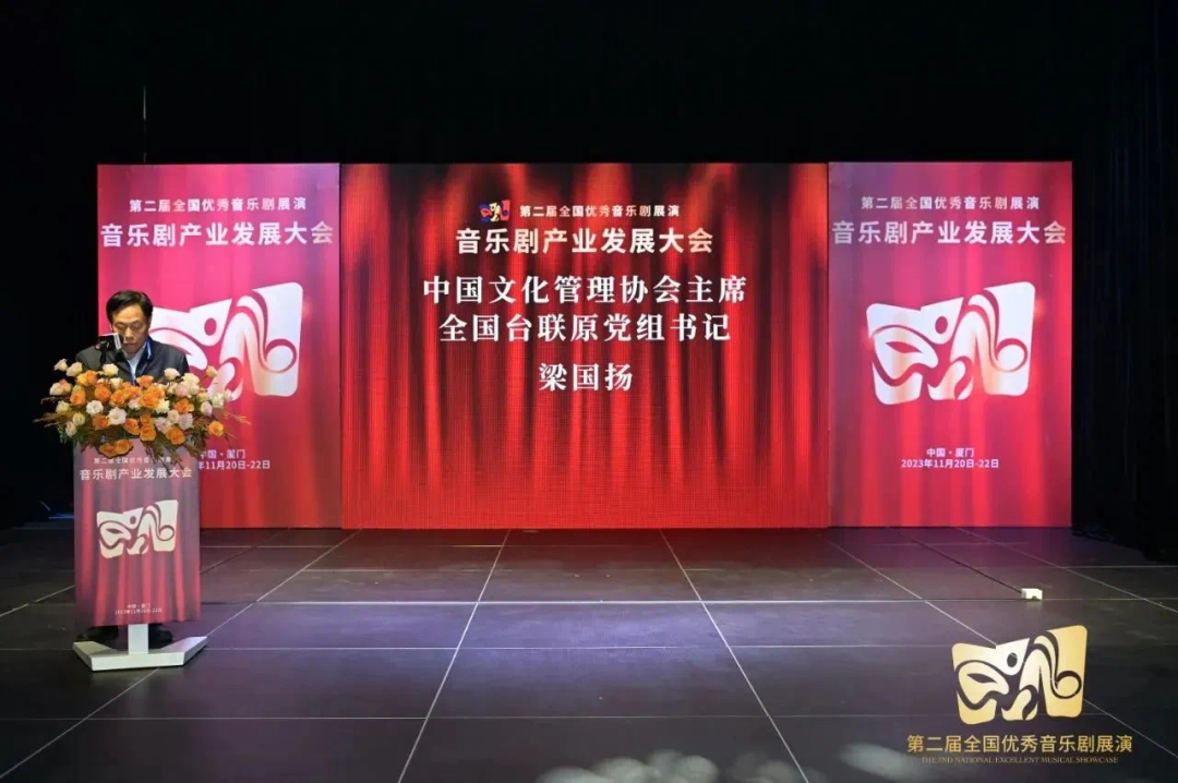 中国文化管理协会主席、全国台联原党组书记梁国扬在致辞中指出厦门作为一座“文化中心、艺术之城、音乐之岛”,有得天独厚的文化优势,音乐剧作为多种文化和艺术元素相互融通的综合性艺术,与厦门文化事业和产业发展定位相互契合。为此,中国文化管理协会将在厦门授牌“海峡两岸音乐剧产业基地”,借此为两岸交流搭建起一座文化桥梁,增进两岸同胞亲情和福祉,推动两岸同胞共同传承和弘扬中华优秀传统文化。让更多优秀的音乐剧作品,成为两岸文化交流的纽带,将家国情怀传遍神州大地,为两岸融合发展注入新动力。