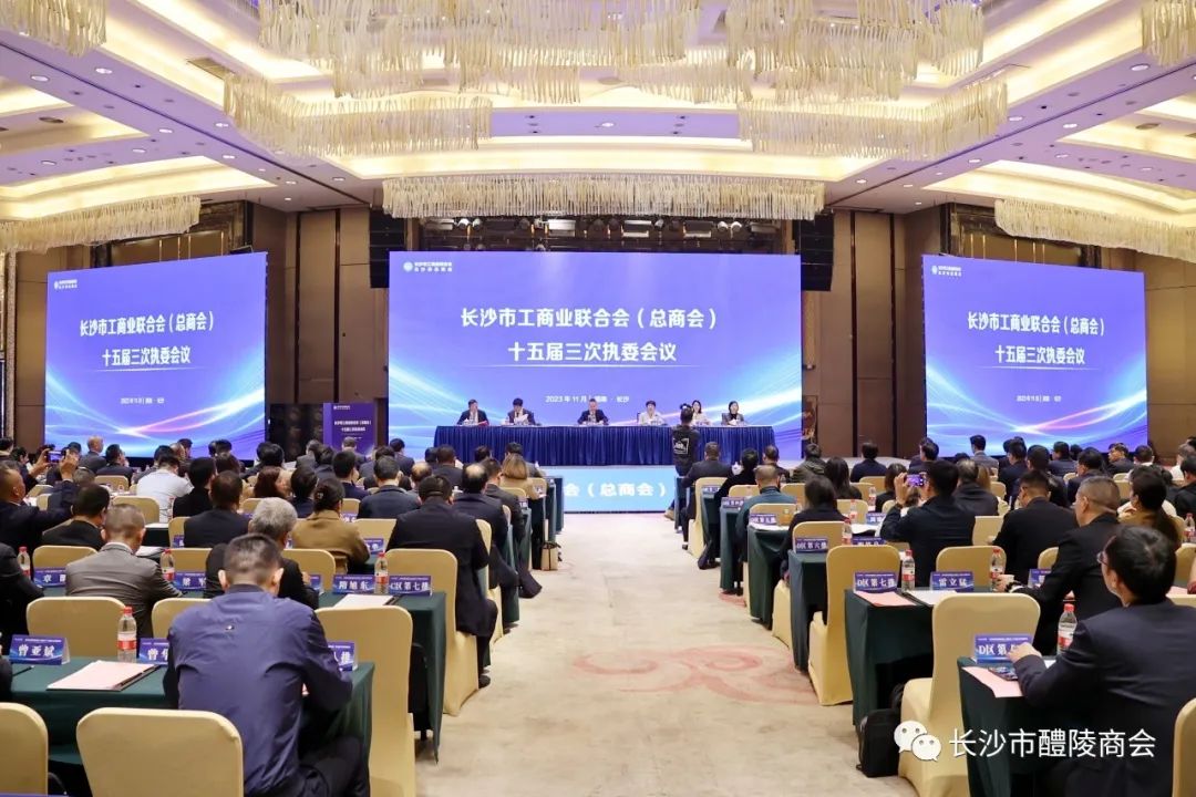 2023年11月23日上午,长沙市工商业联合会(总商会)十五届三次执委会会议在湖南佳兴世尊酒店召开,长沙市人民政府副市长、市工商联主席康镇麟出席并作《执委会工作报告》;全市优秀民营企业家、商协会代表共计290余人参会。我会会长单位金荣集团总裁李雅璇、副会长兼秘书长陈志奇、党支部副书记李霞应邀参加。市委统战部副部长、市工商联党组书记何惠风主持会议。