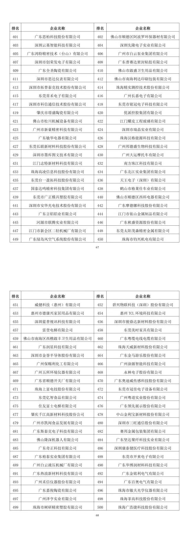 500家入围企业总营收达5.6万亿元。营收超过1000亿元有12家,其中有佛山一家,为美的集团。营收超100亿元的企业有58家,其中11家来自佛山。分别是美的集团、海信家电、邦普循环、联塑集团、格兰仕、兴发铝业、万和集团、新宝电器、群志光电、科达制造、巴德富集团。