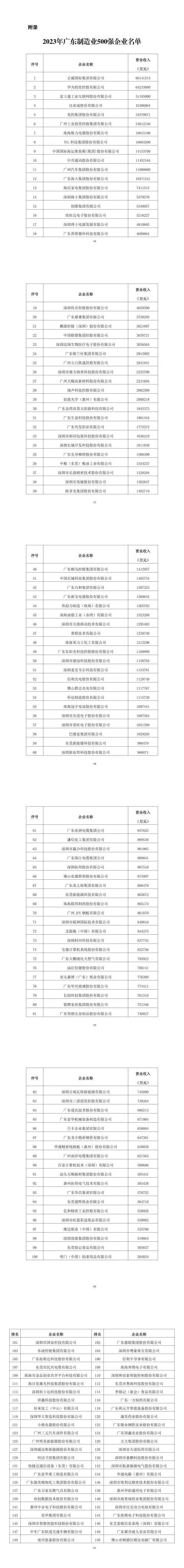 根据《报告》,500强企业分布于24个行业,占全国31个制造业行业的77.4%,这反映出广东制造业不仅行业门类齐全、形成了比较完整的制造业体系,而且在大部分行业都有规模较大、竞争力较强的大中型企业,制造业整体发展水平较高。