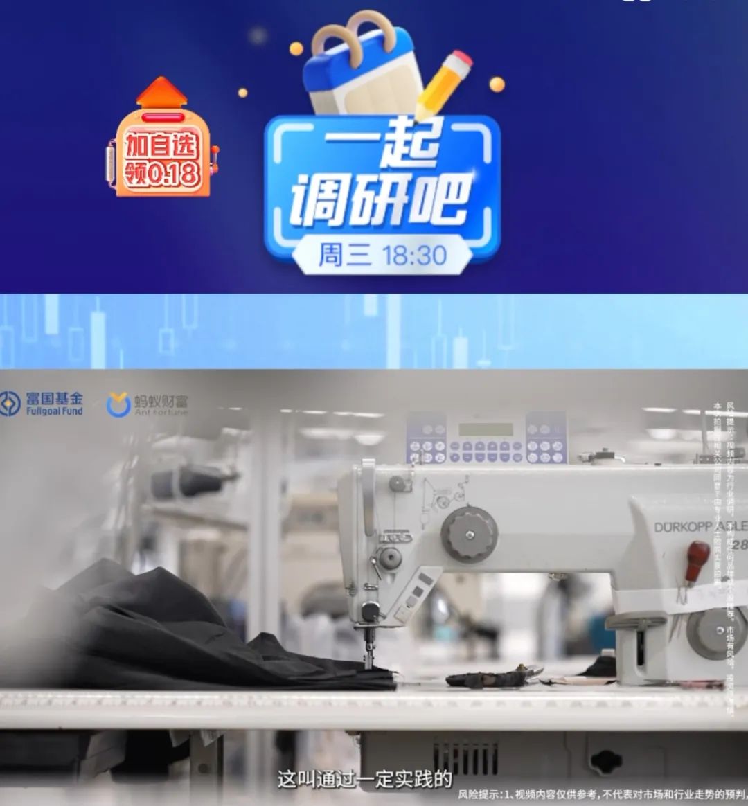 在昨晚蚂蚁财富平台上的富国基金直播间,有超过80万网友跟着基金经理在线走近泉州,“沉浸式”探访鞋服、食品领域的国货企业利郎和盼盼食品,关注“国潮之城”背后的基因和秘密,并在直播间实时解答投资者疑问、交流互动。