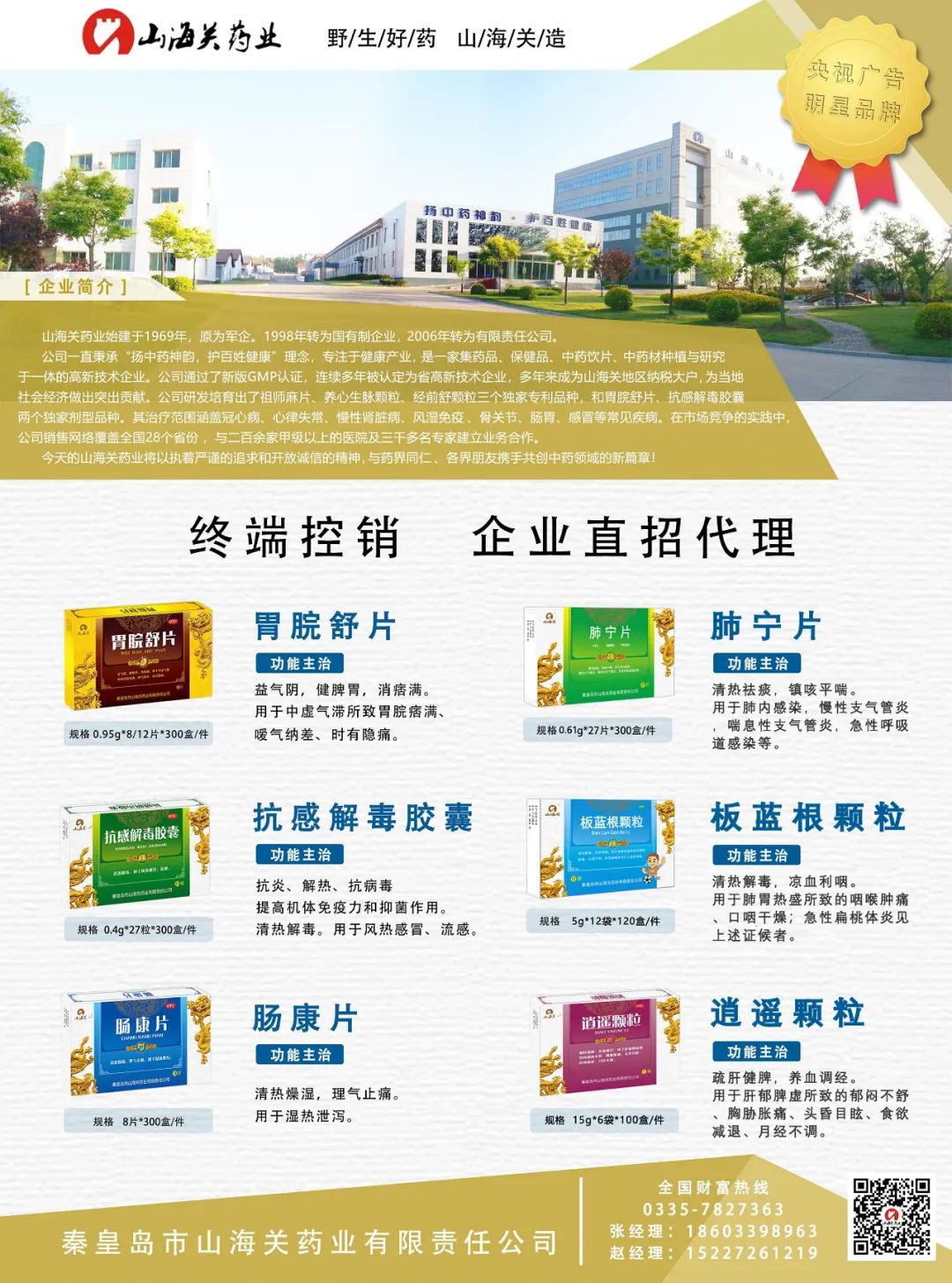 此次盛会,山海关药业将携核心产品-胃脘舒片、抗感解毒胶囊亮相展会,同时还有更多临床药品以及终端系列产品。