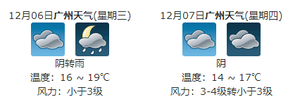 4、广州市5-7日天气情况:预计阴、雨天气为主,温度约14-22度 ,提醒大家注意天气情况,适时添减衣物!
