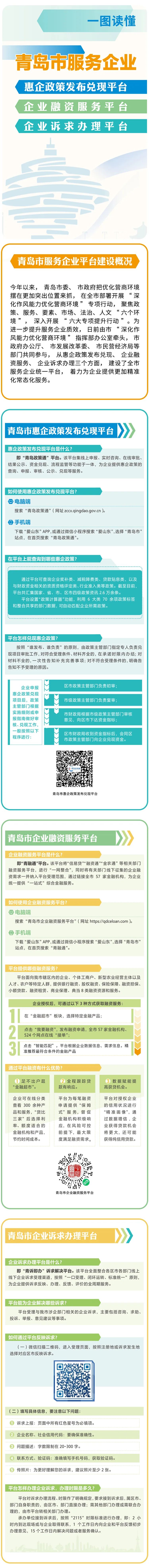 推进会上,市民营经济局、市发展改革委、市政府办公厅相关负责人面向全市各级商协会组织、首席政策官和广大民营企业家,先后介绍了“青岛政策通”“青融通”“青诉即办”三个平台的建设背景、主要功能、运行保障等相关情况,帮助企业了解平台使用规范,解决企业痛点堵点,真正为企业发展“浇水施肥”“纾困解难”,以行之有效的措施促进民营经济健康发展和民营经济人士健康成长。专题宣讲线上线下共150多万人次收听收看。下一步,全市工商联系统、各商协会将充分发挥桥梁纽带作用,积极推动三个平台与市工商联“商会首席政策官”和各商会政策宣讲团融合汇通,合力提升服务企业效能。