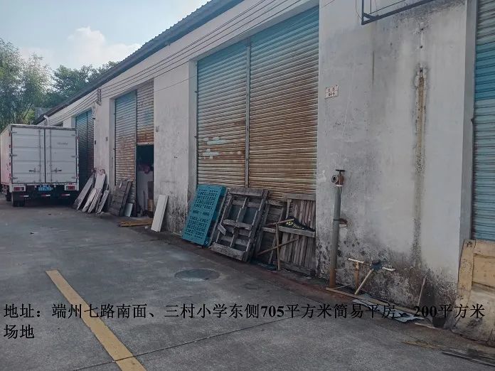 该物业位于肇庆市端州区端州七路南面、三村小学东侧705㎡简易厂房、200㎡场地,租期6年。物业面积约905平方米(其中简易厂房705㎡,场地约200㎡),交易底价为每月8250元。每次报价增幅不低于100元,价高者得。