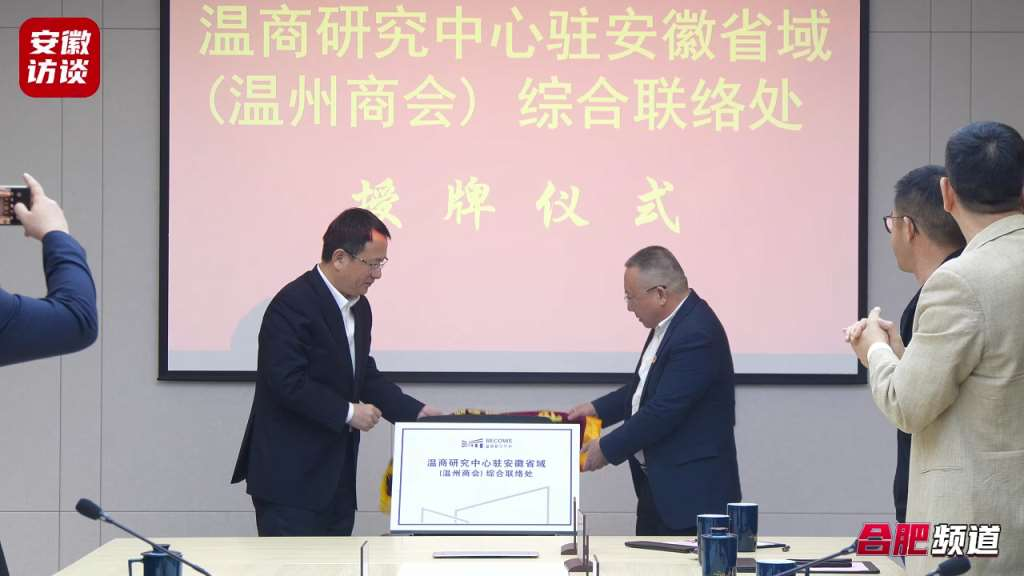 最后,温州银行党委书记、董事长陈宏强对“温州研究中心驻安徽省域(温州商会)综合联络处”进行了授牌,标志着双方的合作将更加紧密。此次座谈会是温州银行与合肥市温州商会深化合作的重要一步,双方将以此为契机,进一步加深了解、增进友谊,共同探索银会合作新模式,实现共赢发展。