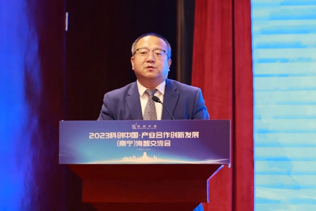 11月21日,2023科创中国产业合作创新发展(南宁)海智交流会暨八桂海智国际创新创业联盟建设启动仪式在南宁举行。广西科协党组成员、副主席朱其东线上视频致辞。广西民族大学党委常委、副校长姜明国出席启动仪式并致辞。